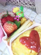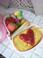 とりあえず、オムライス弁当と大好きなイチゴを入れました。