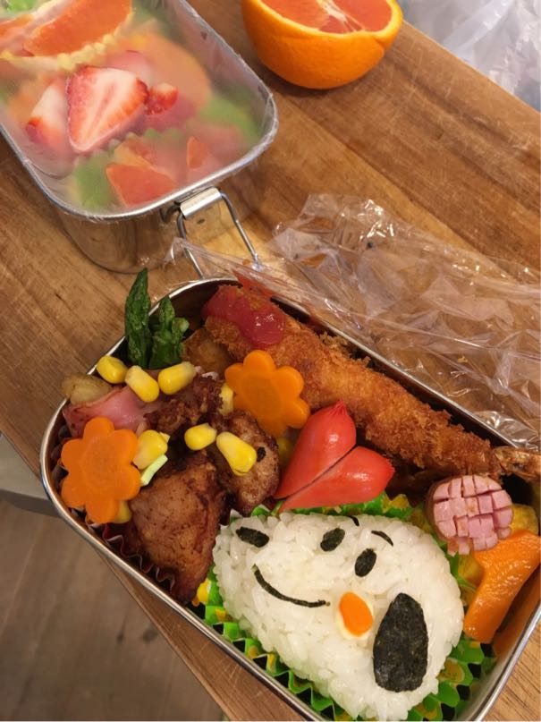 先週末、お天気にも恵まれ娘の運動会。キャラ弁希望の指令がありスヌーピにしたけど??な感じ。ちなみに家族のも作りました。