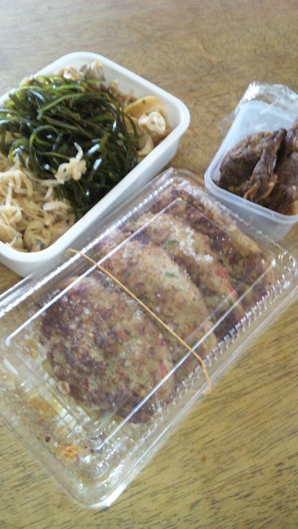 ハンバーグにたけのこ、ジャガイモの煮物、
