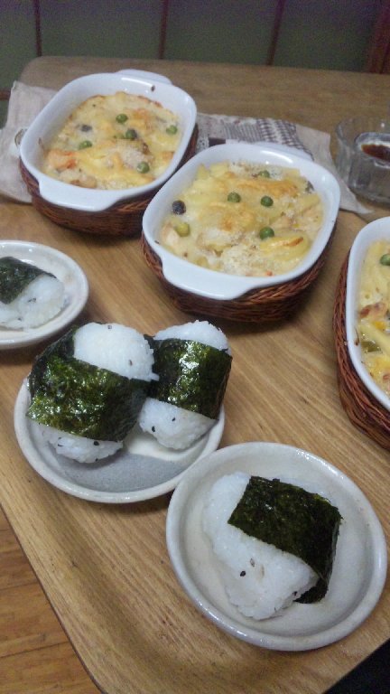おにぎりと手羽先を揚げ実家の母と冷蔵庫にあるもので