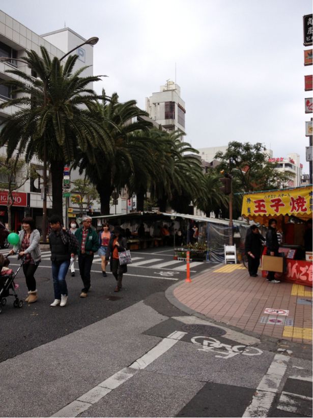 日曜市では、揚げたへ焼きたての芋てんや焼鳥を食べました。